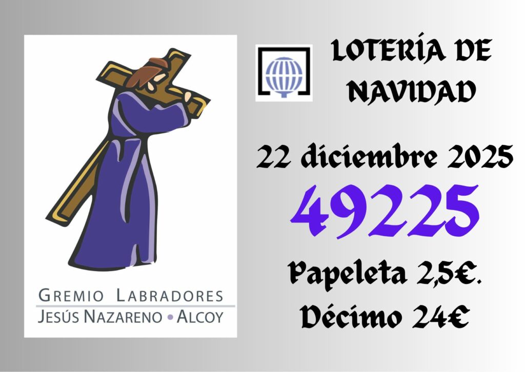 El Gremio de Labradores Jesús Nazareno de Alcoy ya tiene disponible la Lotería de Navidad para este año. ¡No dejes que se te escape!