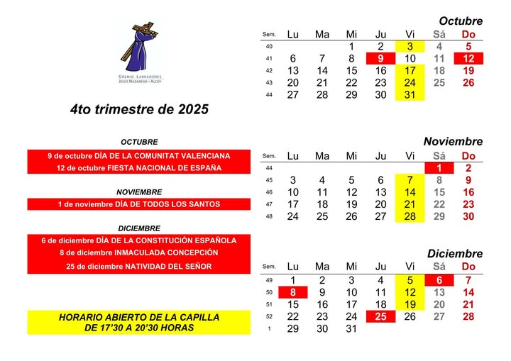 Horario de la Capilla del Gremio de Labradores: ¡Cuarto Trimestre 2025!